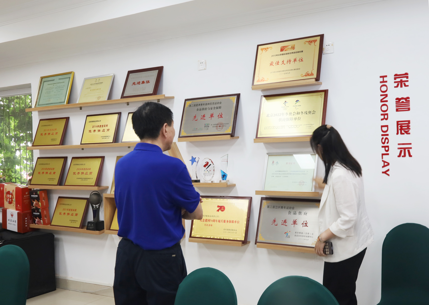 隨后,在公司領導的陪同下,買建明會長一行來到公司榮譽展示區,深度見證公司近四十年的發展及成就。從高新技術企業認證到“專精特新”中小企業的稱號,從服務重大活動到多項權威資質認證,每一項榮譽都記錄著公司在發展歷程中的輝煌成就。買建明會長駐足觀看,了解各項榮譽背后的故事,對公司多年來在技術創新、產品質量把控、社會責任履行等方面所付出的努力給予充分肯定。